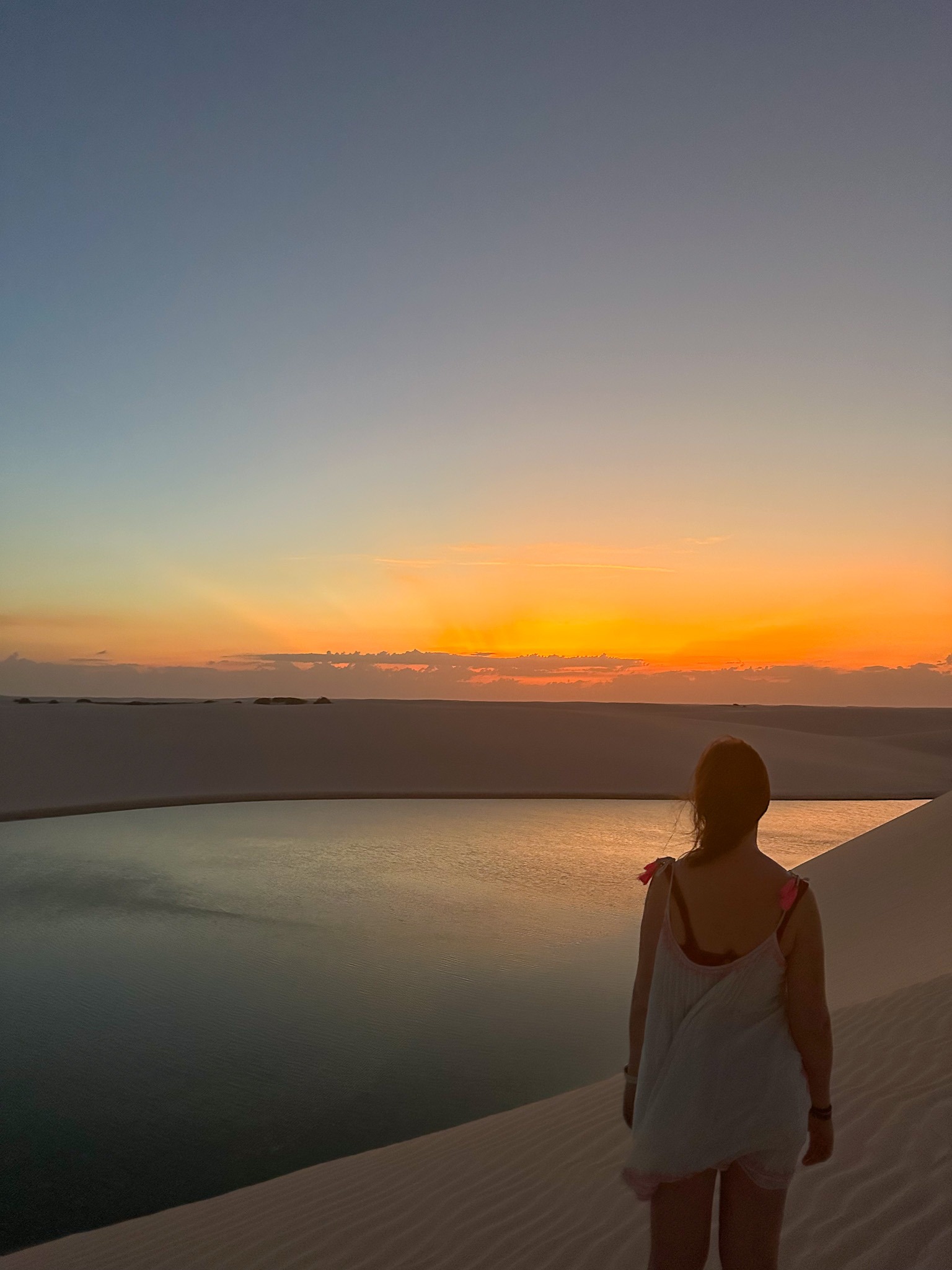 As lagoas são MUITO bonitas. A água é transparente, quentinha e doce. Nenhuma foto que você vai ver vai ser tão bonita quanto ver esse lugar ao vivo. Tanto na Lagoa Bonita quanto na Lagoa Azul, o guia nos deixou em uma lagoa principal, mas nos deu opção de explorar outras lagoas ao redor. Geralmente, o guia te deixa num local e você fica ali por algumas horas. Todos os dias, tanto em Barreirinhas quanto em Santo Amaro, eles te levam no fim do dia para um ponto alto nas dunas para assistir o por do sol. O por do sol é um espetáculo à parte, não deixe de aproveitar.